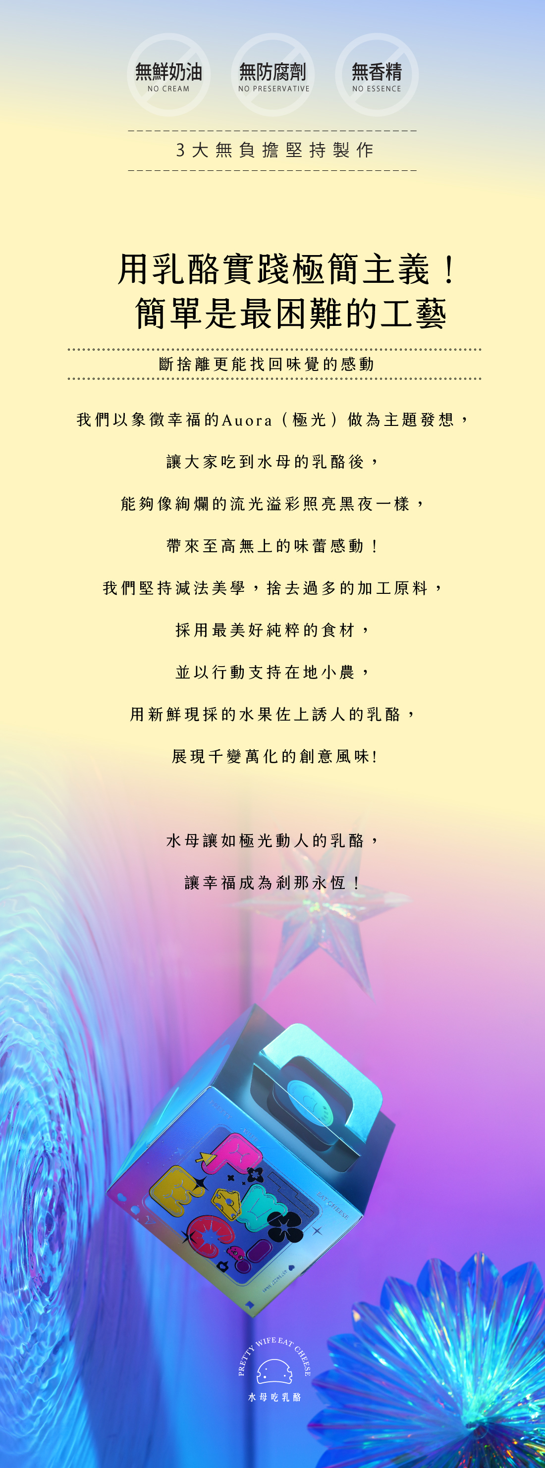 主要成分:乳酪、白巧克力、香草莢、蛋、玉米粉、糖、奇福餅乾等
