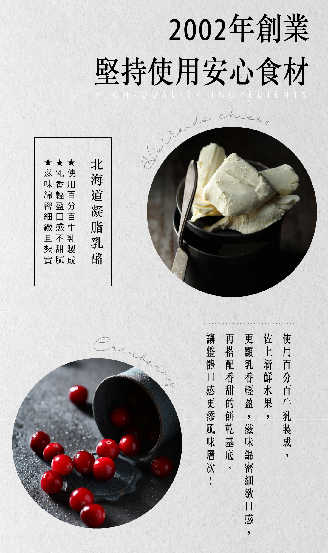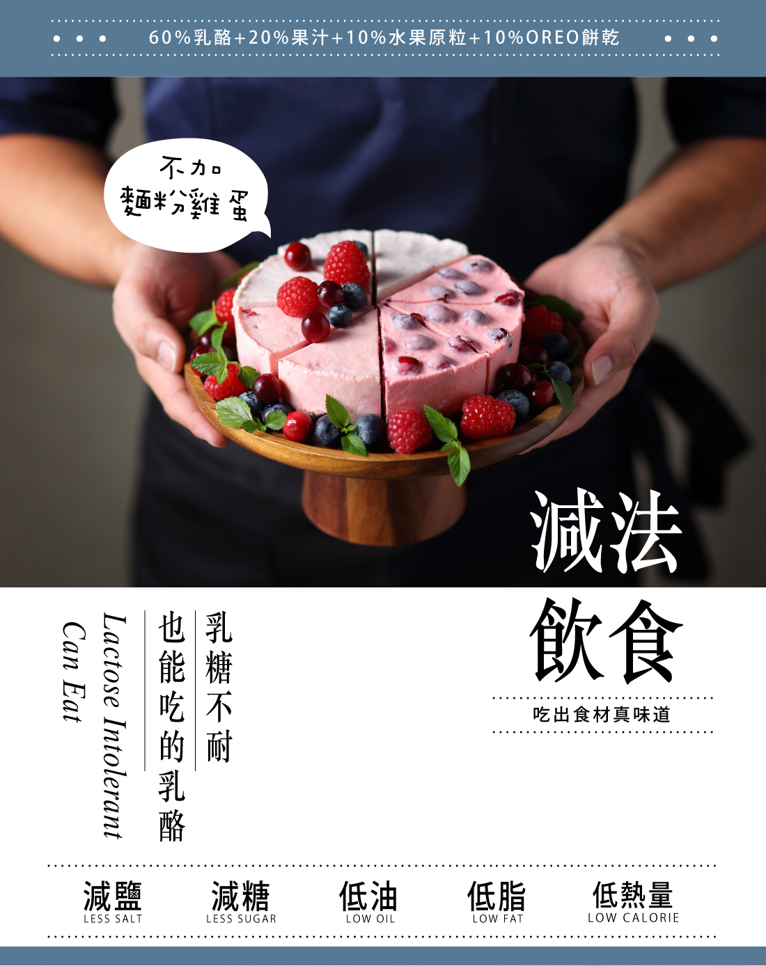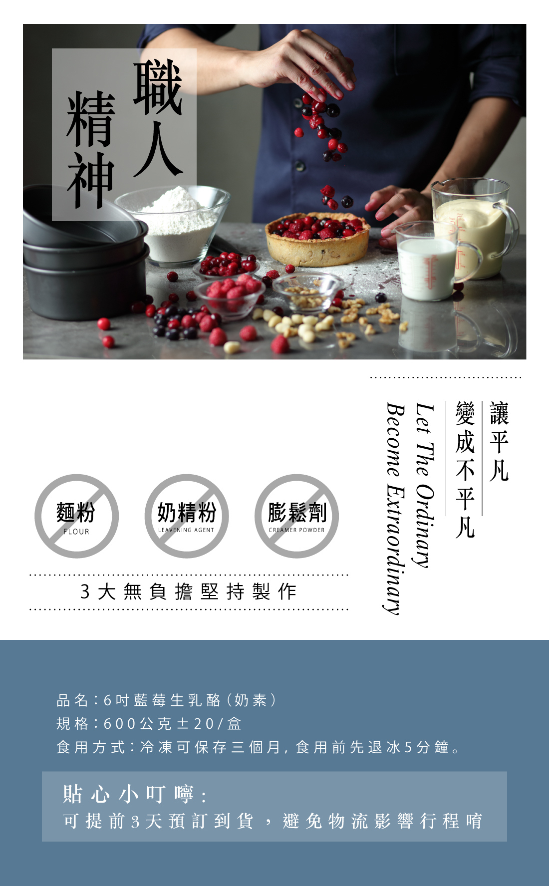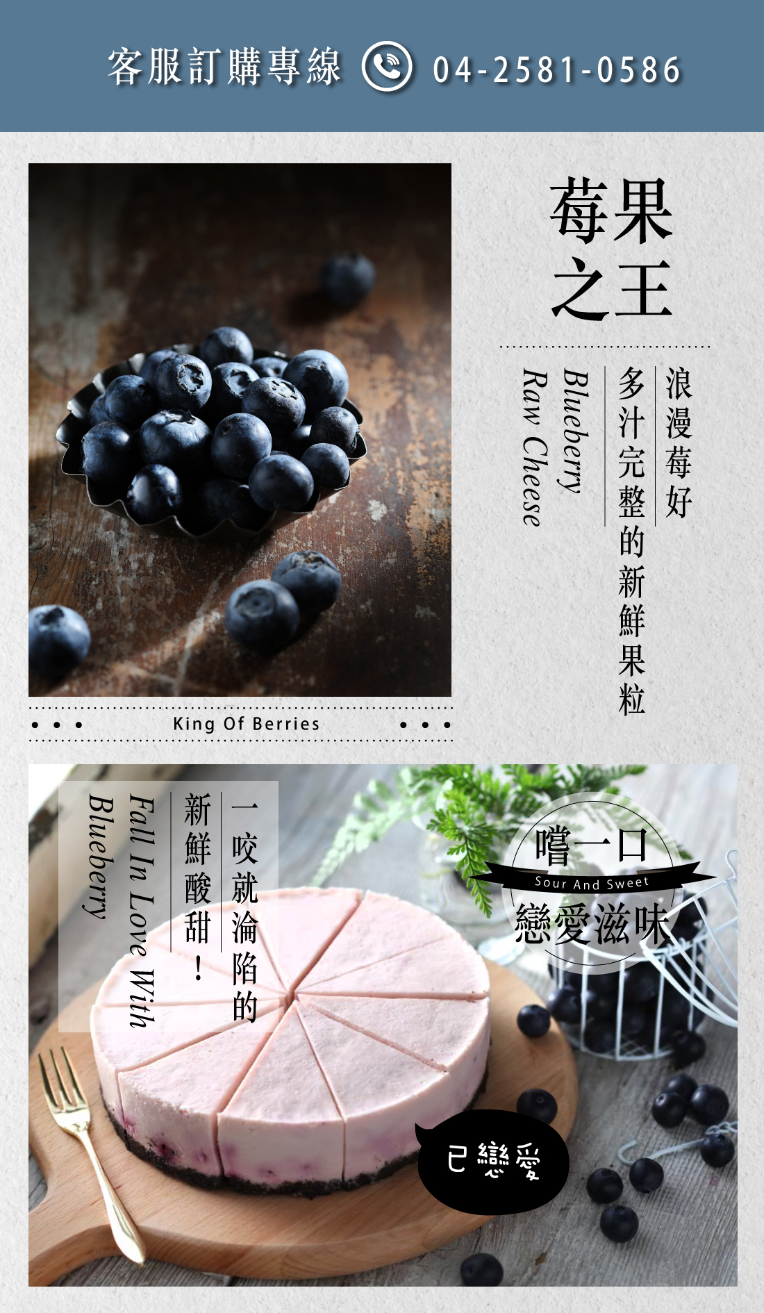成份:乳酪、檸檬、柳橙、糖、餅乾、新鮮藍莓⋯等