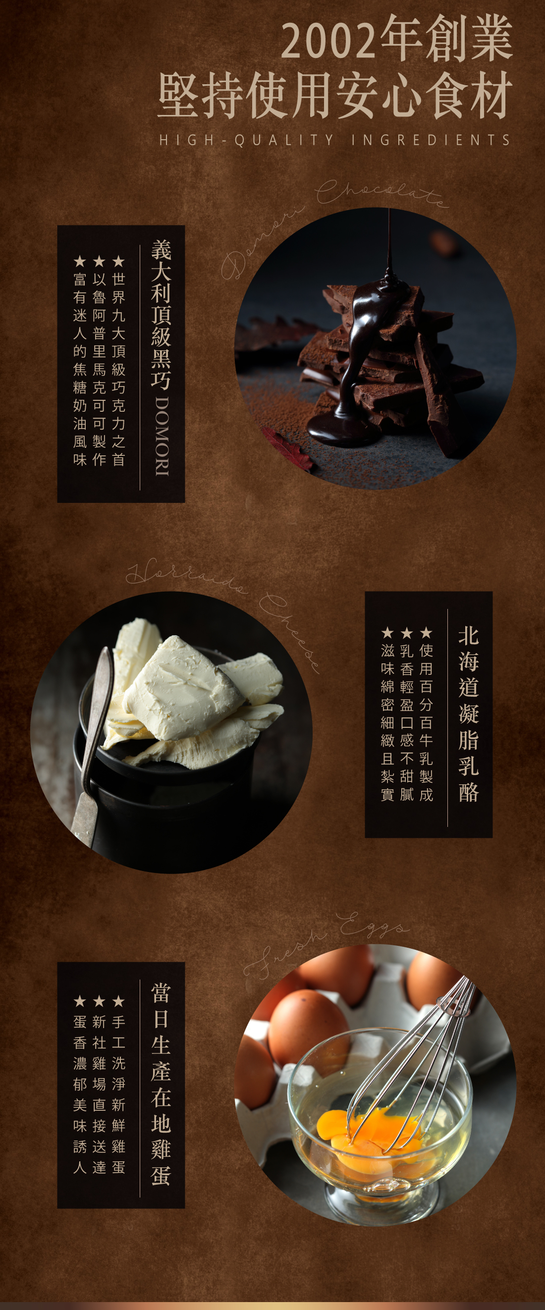 主要成分:乳酪、糖、蛋、牛奶、巧克力等