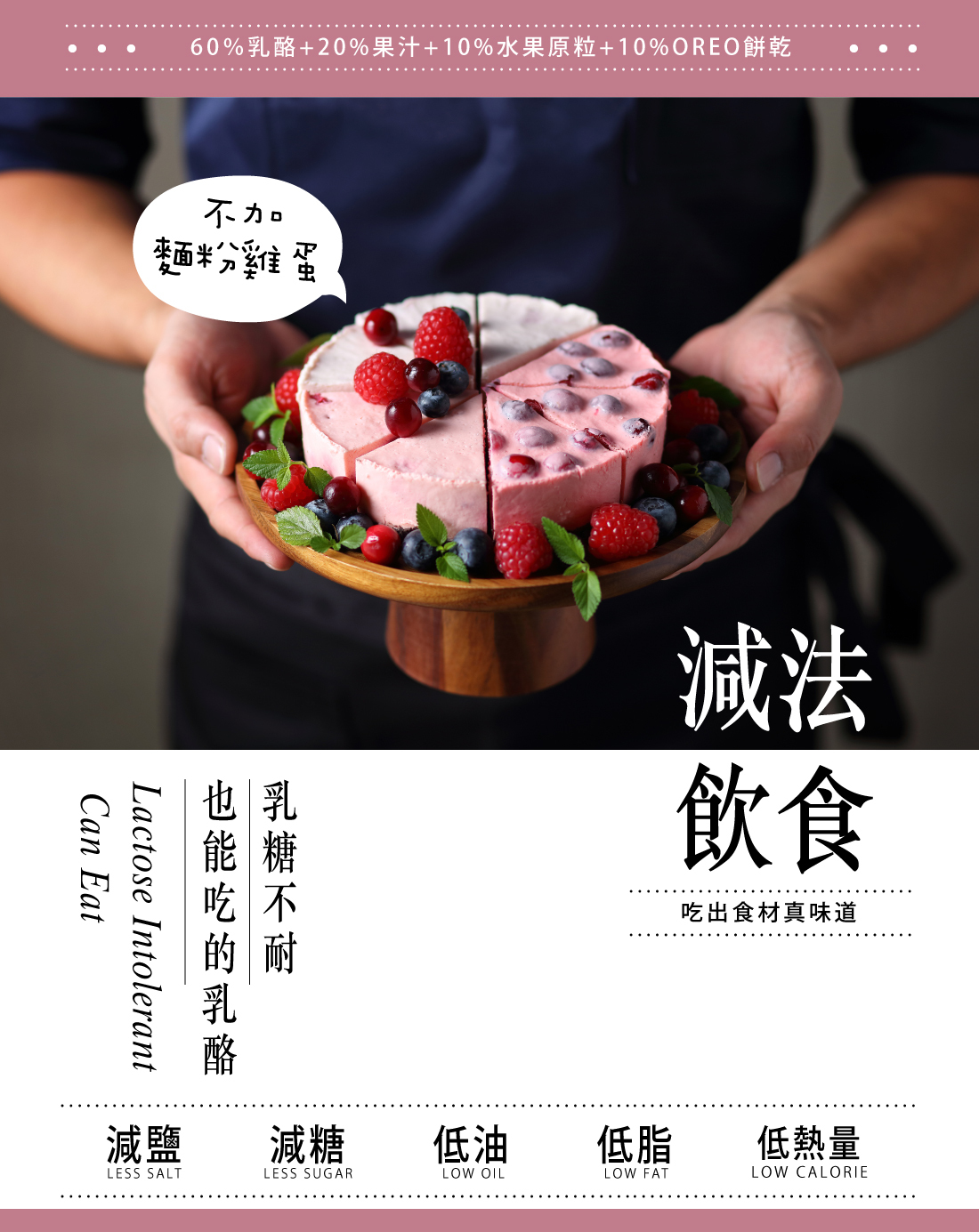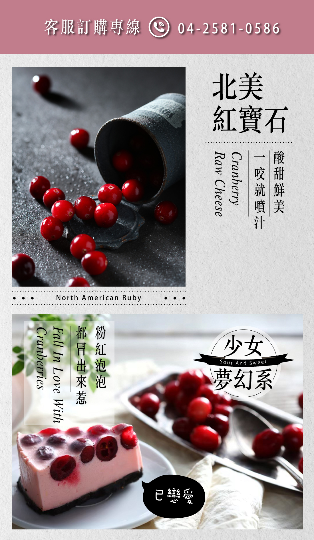 成份:乳酪、檸檬、柳橙、糖、餅乾、新鮮蔓越莓等⋯