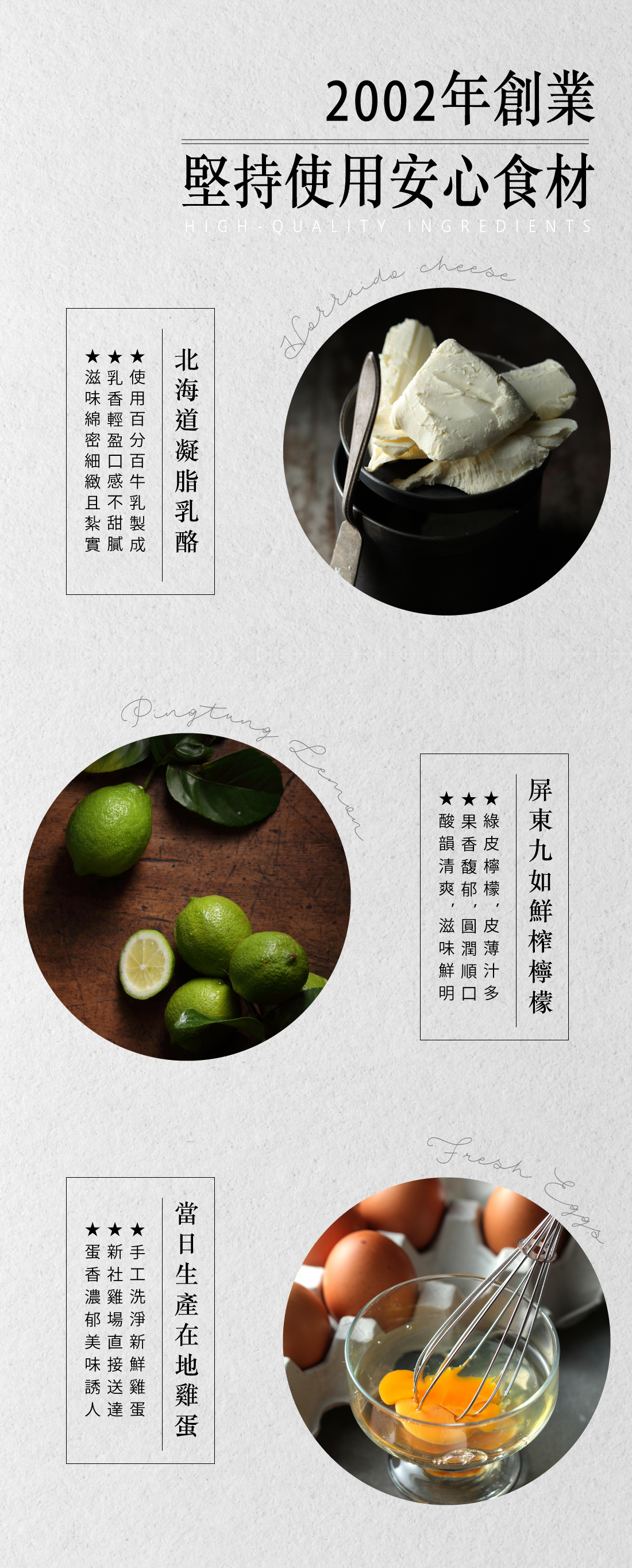 主要成分:乳酪、糖、蛋、牛奶、檸檬等