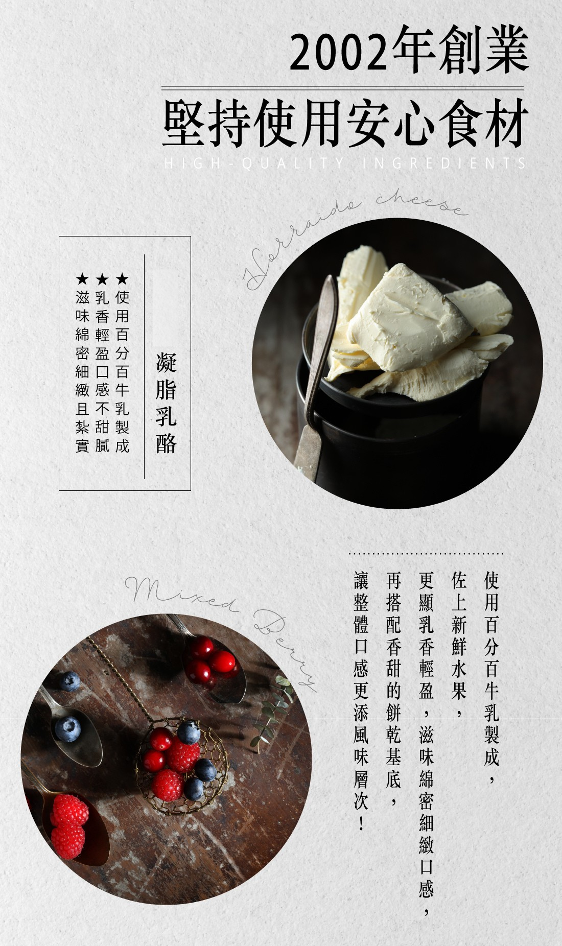 成份:乳酪、檸檬、柳橙、糖、餅乾、新鮮覆盆子等⋯